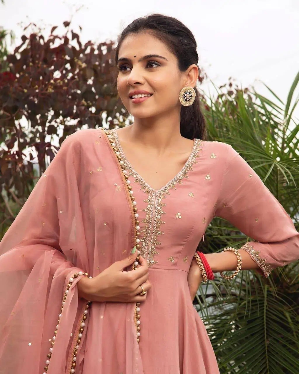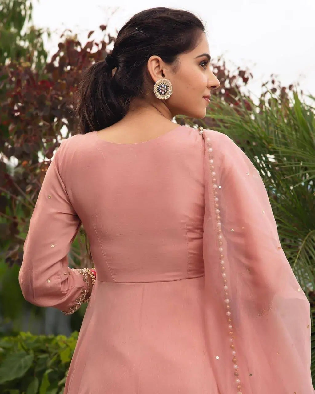 Expertly crafted from luxurious Roman silk, our 1401-roman silk gown exudes elegance and sophistication. Adorned with intricate Moti and Embroidery work, this gown will make you stand out at any special occasion. Complete your look with the matching georgette dupatta for a touch of grace and glamour.